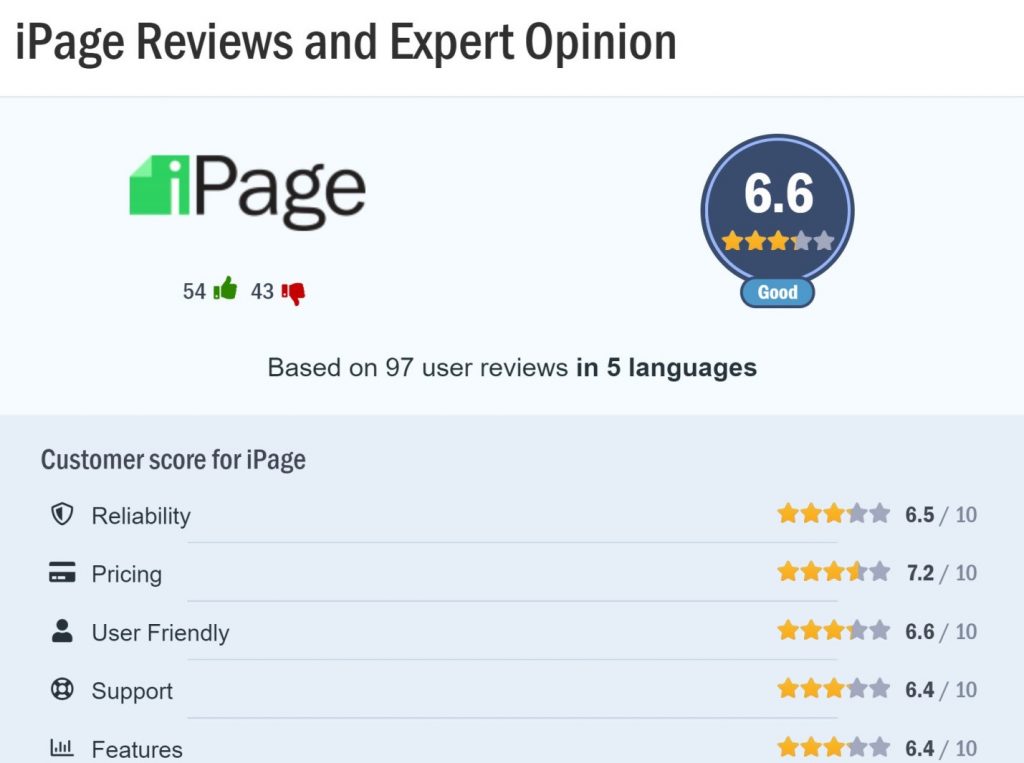 ریتینگ میانگین کاربران برای آی پیج، با در نظر قرار دادن رای حدود 100 نفر، در پایان، 6.6 بوده که به میزان قابل توجهی نسبت به ریتینگ هاست ادوایس (8.9) پایین تر است: