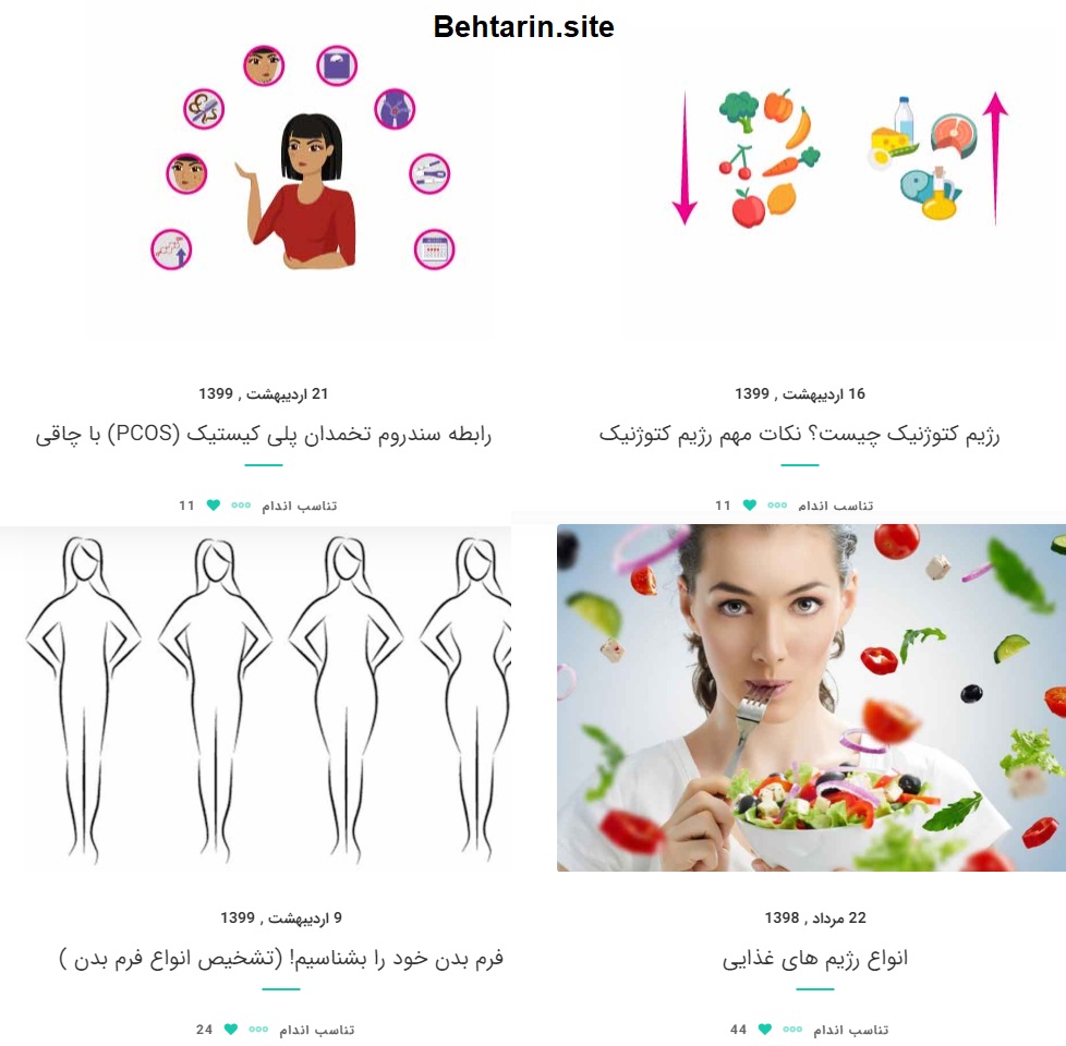 قسمت مقالات چهار زیرمجموعه دارد. پوست و زیبایی، تناسب اندام، لیزر و مو. سراغ قسمت تناسب اندام رفتیم. مقالات خوبی در این بخش جمع شده که اختصاصی نیز هستند و کپی نشدهاند. با این حال، سرعت آپدیت این قسمت از سایت بالا نیست و دیر به دیر مطلب جدیدی درج میشود. این بین باید به گرافیک خوب این صفحه نیز اشاره کنیم که با حوصله و با سلیقه کار را انجام دادهاند.