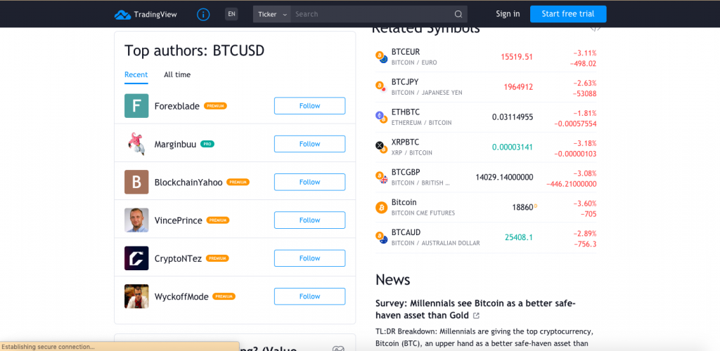 از بخش های مهم دیگر این سایت تحلیل هایی است که اشخاص خبره در بازارهای مالی و ارزهای دیجیتال ارائه میدهند. با دنبال کردن این افراد فعال تمام مطالبی که ارائه میدهند برایتان در ایمیل ارسال شده و در بخش نمودار این سایت اعلان داده می شود.