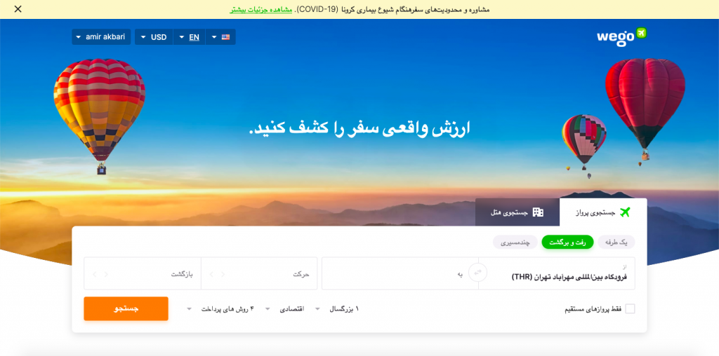 برای برنامه ریزی سفر خود از یک سرویس بینالمللی و مطمئن استفاده کنید. در ویگو (Wego.com):