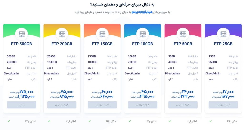 می توانید برای دریافت فضای بک آپ با مشخصات زیر هم سراغ میزبان ورد پرس بروید: