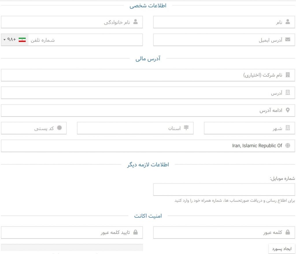برای ثبت نام در سایت باید موارد جدول تصویر زیر را پر کنید. همچنین می توانید این پروسه را همزمان با ثبت اولین سفارش خود هم طی کنید.