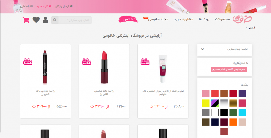 فروشگاه اینترنتی خانومی با تنوعی بالغ بر 20 هزار کالای آرایشی و بهداشتی امکان انتخاب بهترین محصولات از مجموعه کاملی از برترین برندهای ایرانی و بین المللی فراهم آورده است. این فروشگاه با ارائه تصویر و توضیحات تخصصی و دقیق درباره هر کالا، ثبت نظرات کاربران و امکان بازگشت کالا، انتخاب را برای مشتری آسان نموده است.